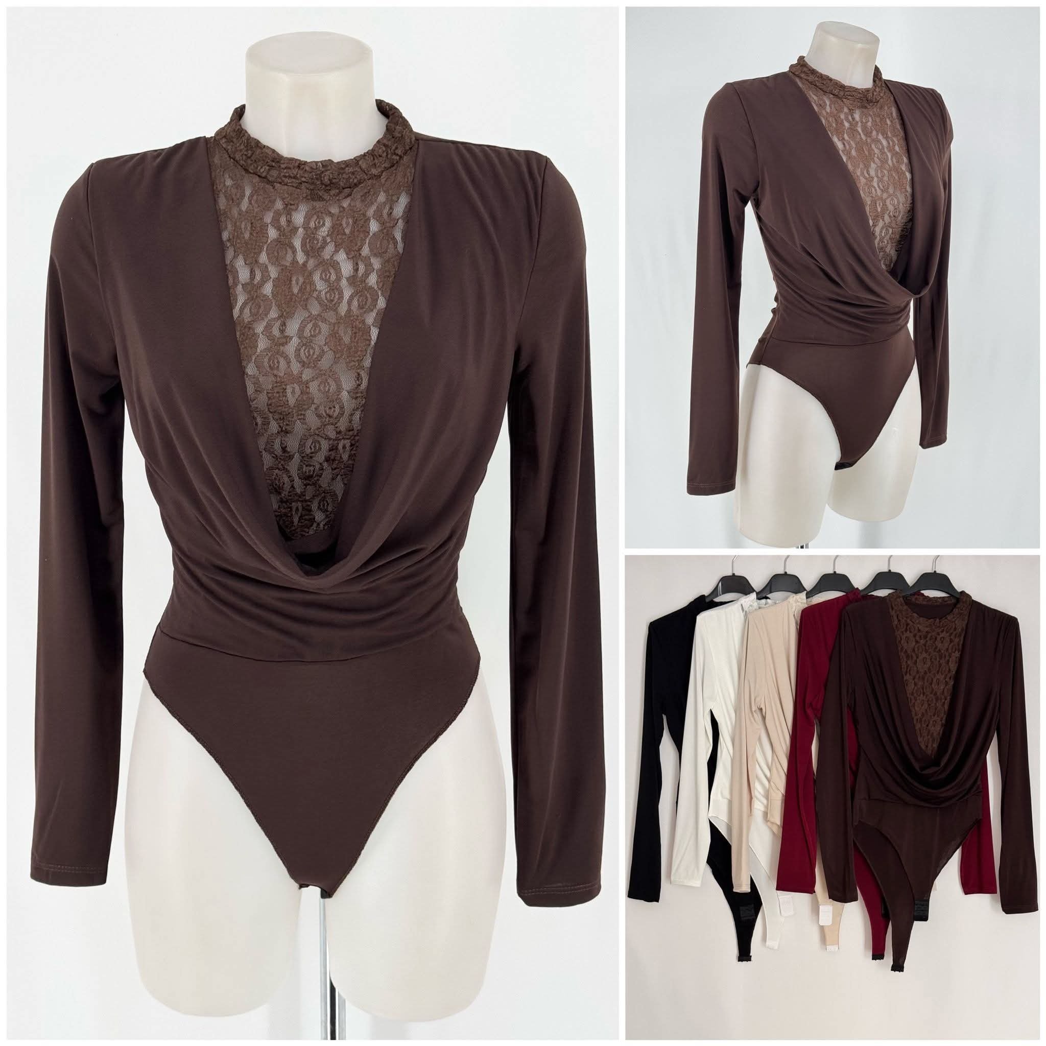bodi de manga larga escote de encaje talla única desde una 36 a 44