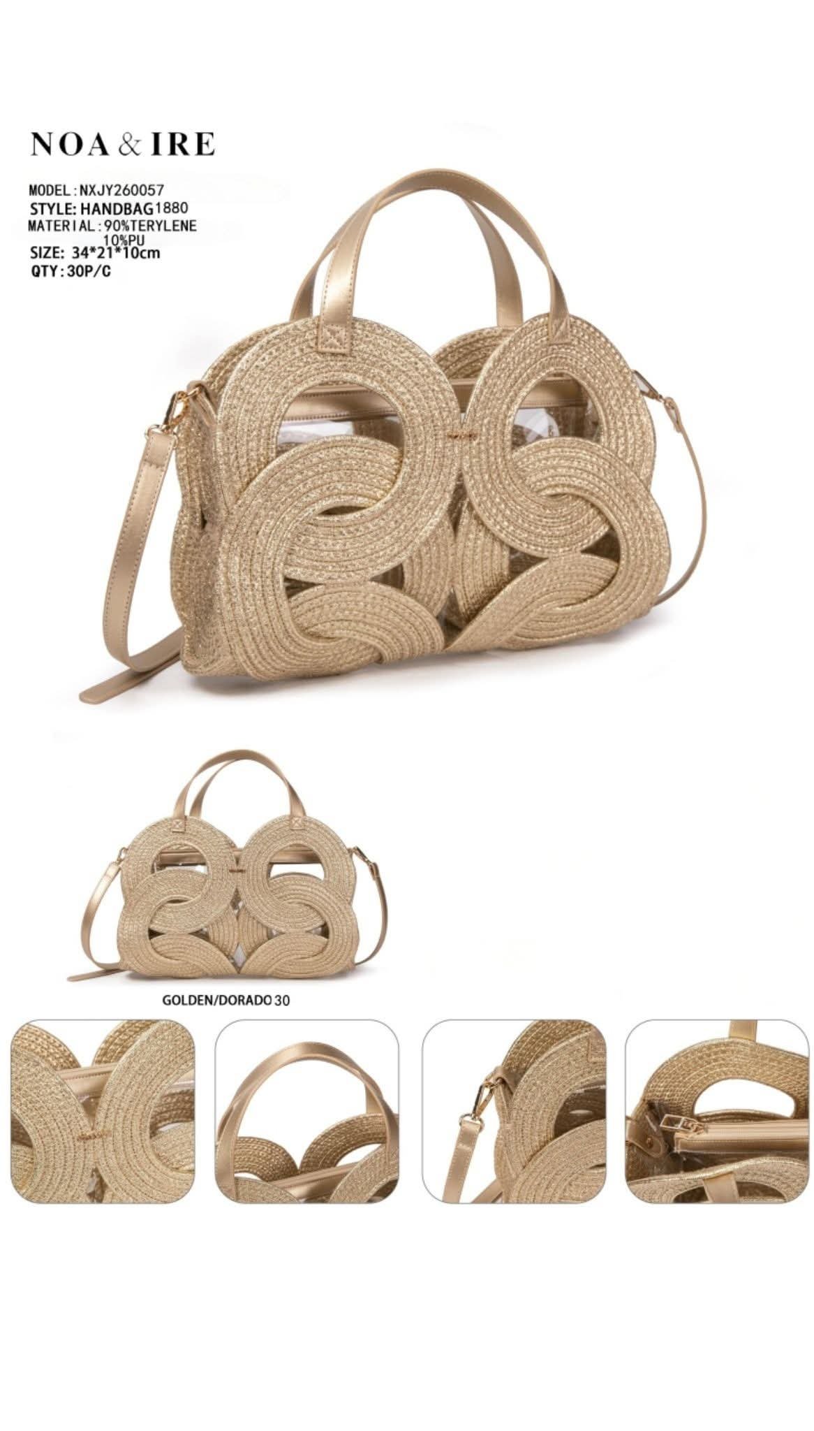 bolso en tonos dorados formándoles círculos.