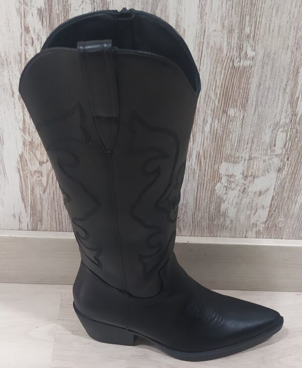 bota alta negra con cremallera en el lateral , tacón cuadrado de 4 cm . Todos los números.