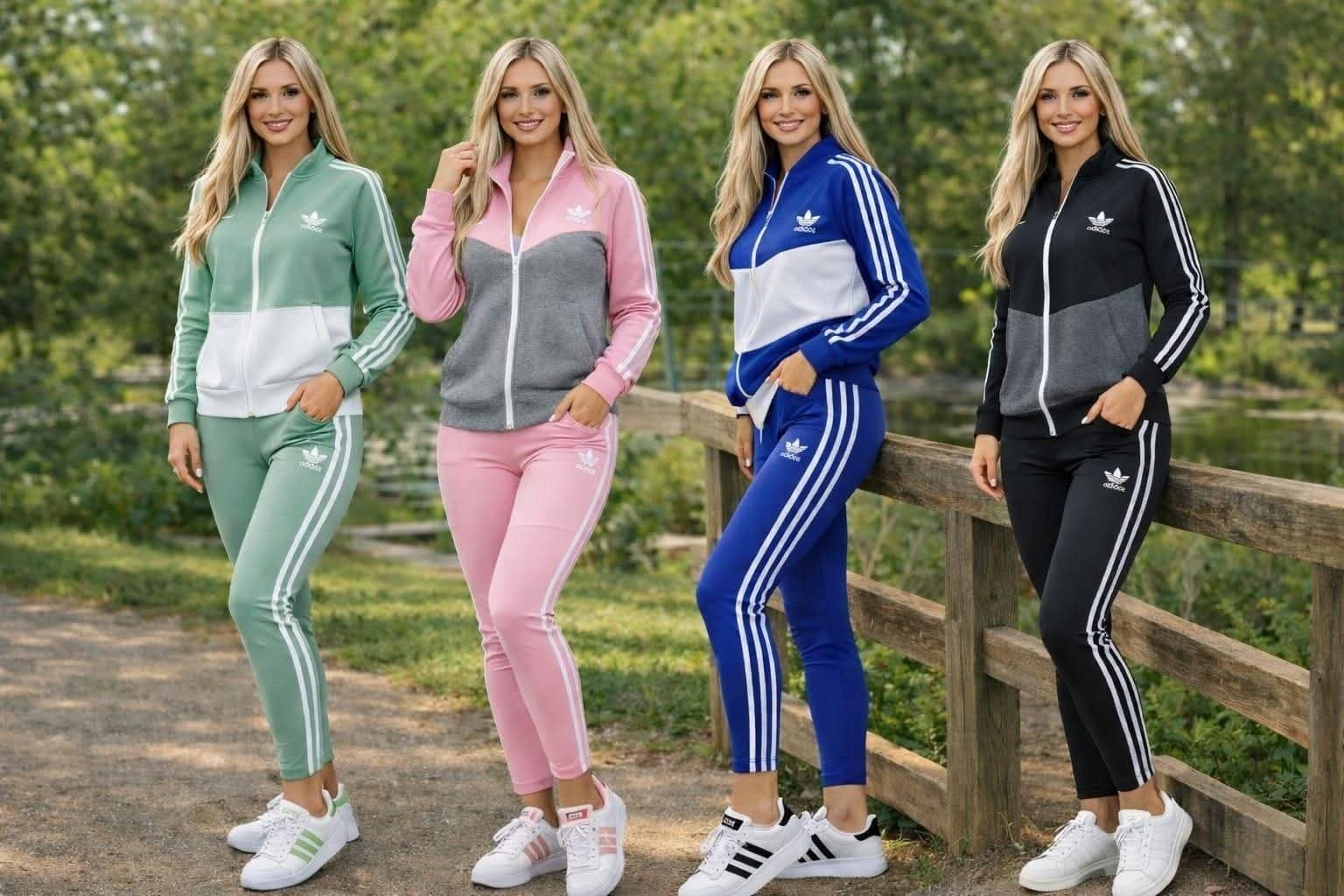chándal de mujer inspiración ADIDAS con unas líneas laterales blancas en la pierna. Viene por tallas y diferentes colores.La sudadera viene con cremallera y bolsillos.