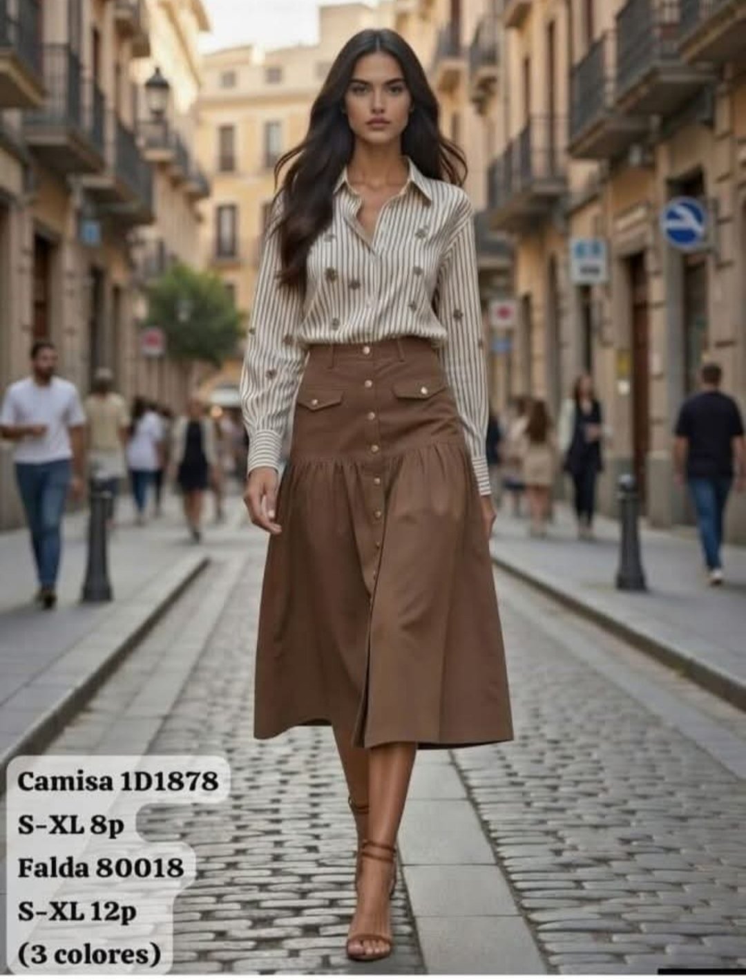 falda de tela con botones en la parte delantera . Viene por tallas y diferentes colores.