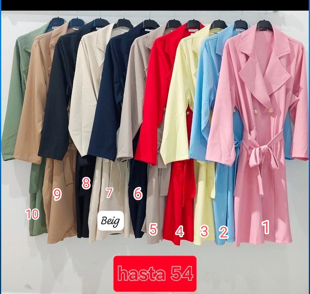 Gabardina con botones y lazada en la cintura . Talla única desde la 46 hasta la 54/56 máx. Diferentes colores.