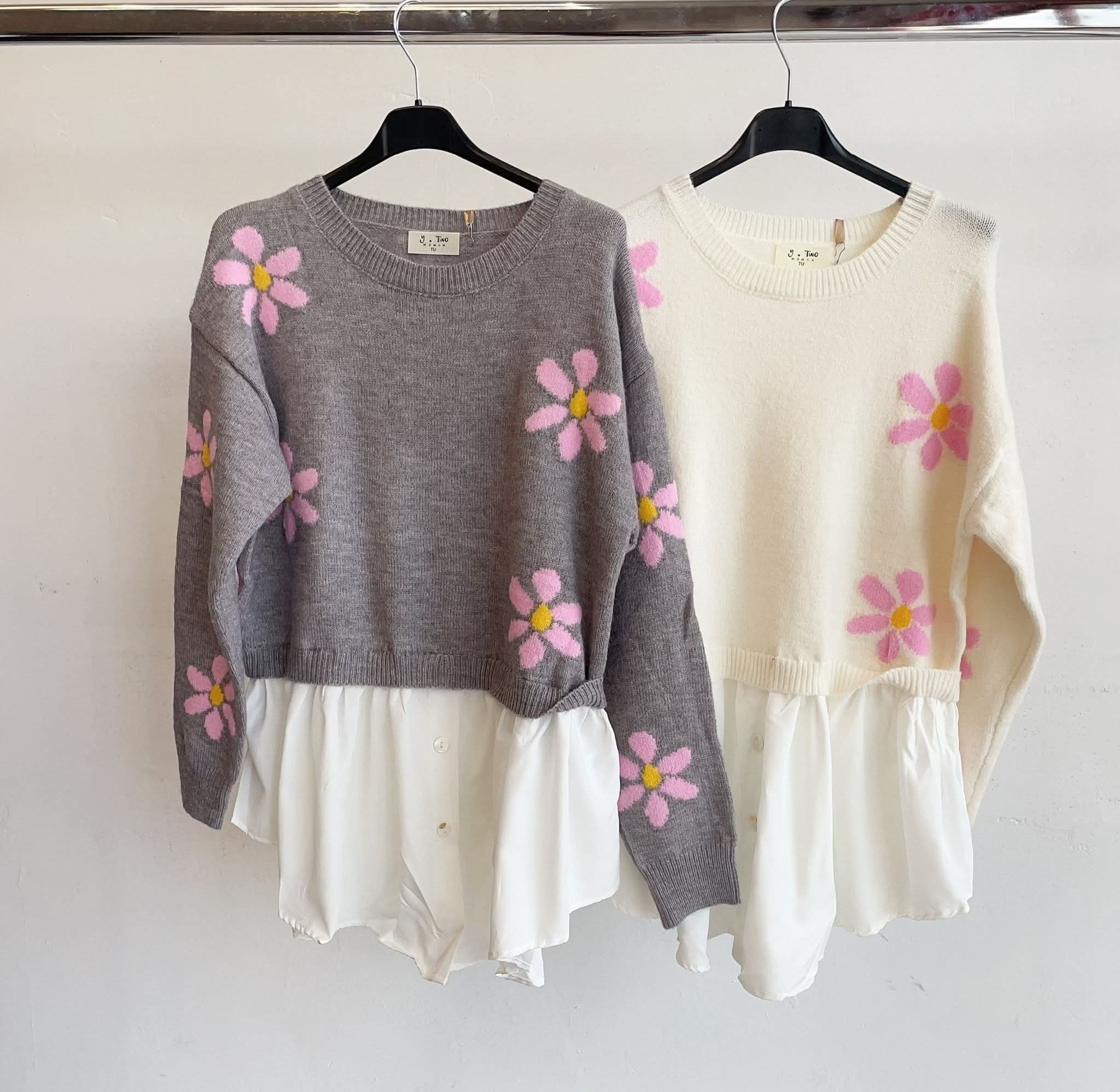 jersey de flores con sobre camisa. Talla única desde la 36 hasta la 44/46 aprox. Viene en dos colores.