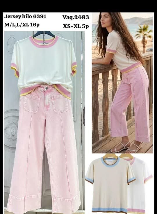 jersey de hilo con el filo del cuello ,manga y liguilla de otro color . Viene por tallas y diferentes colores.