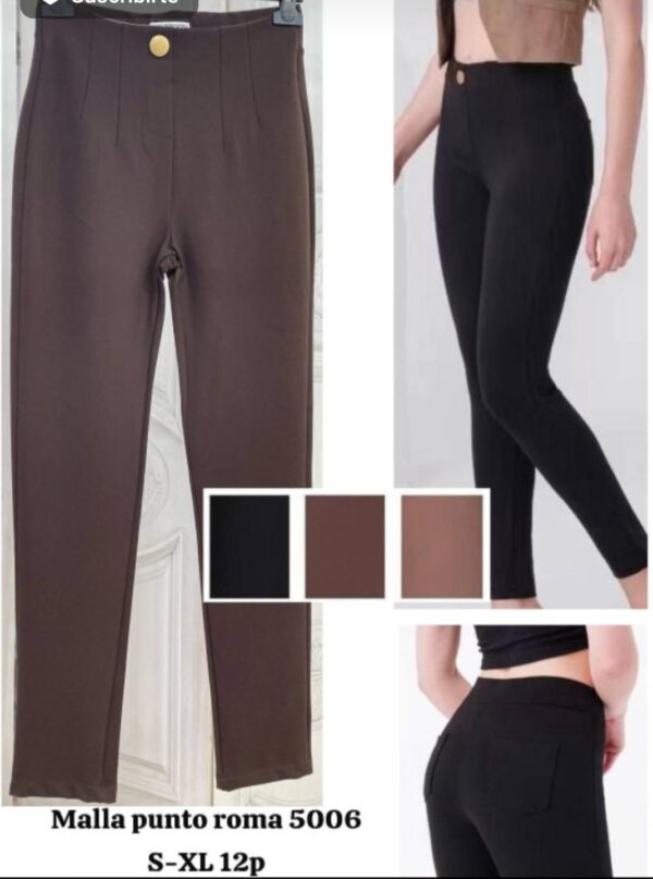 malla de punto de pinzas y con un botón .Es de pitillo por debajo.Viene por tallas y diferentes colores.