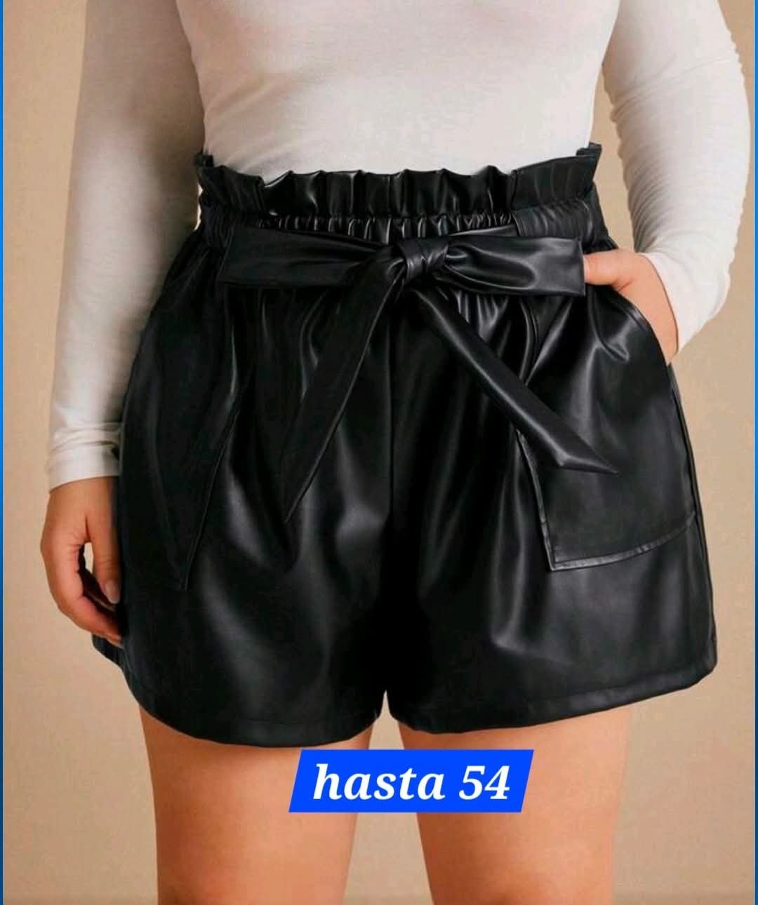 pantalón corto de polipiel con lazada . Talla única desde la 46 hasta la 54 aprox.
