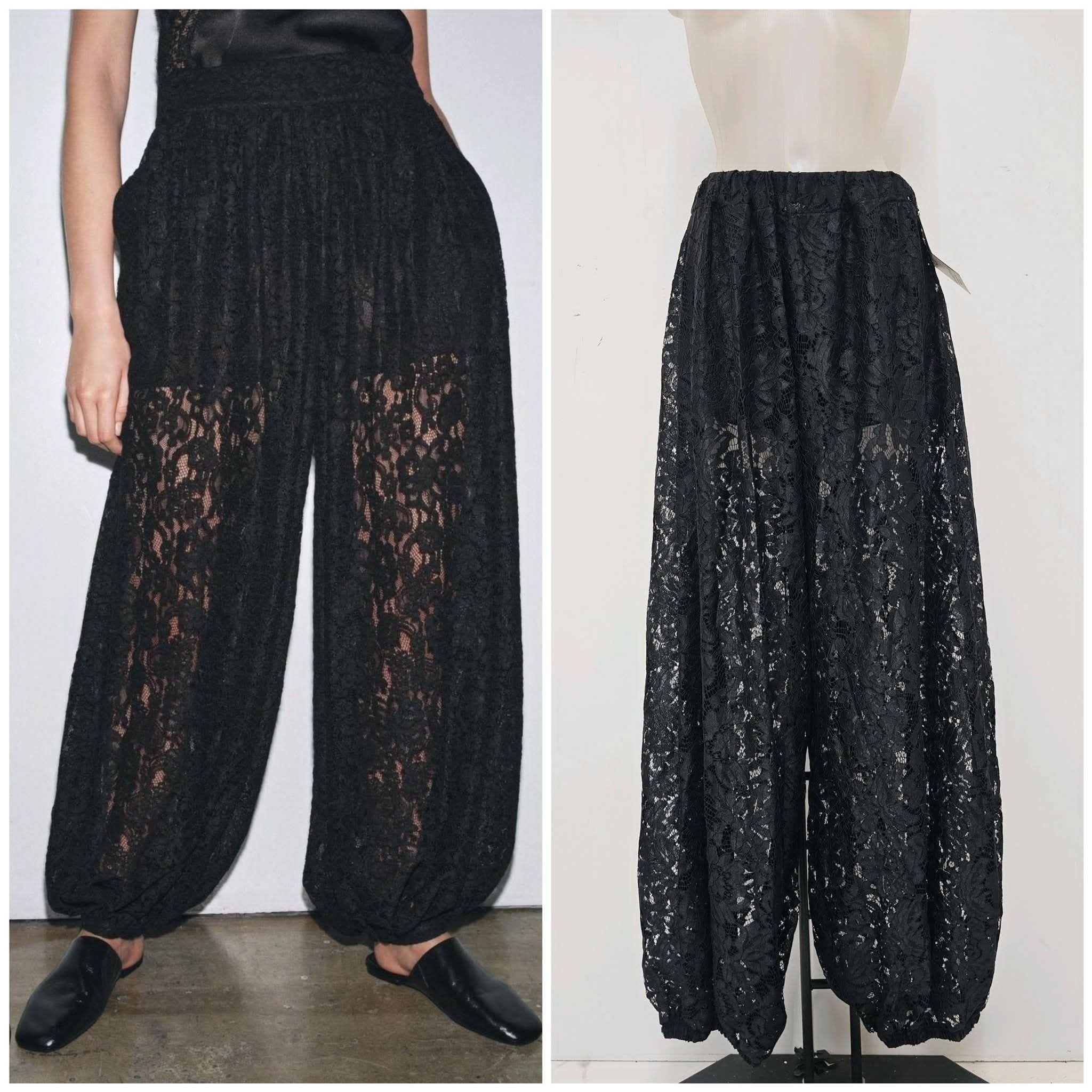 pantalón negro de encaje bombacho con forro debajo y elástico en la parte de abajo. Talla única desde la 36 hasta la 44/46 aprox.