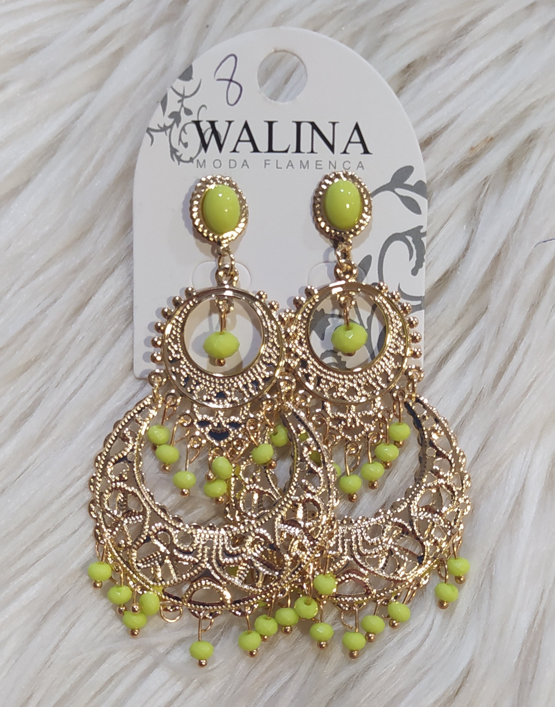 pendiente de flamenca en dorado y verde lima.