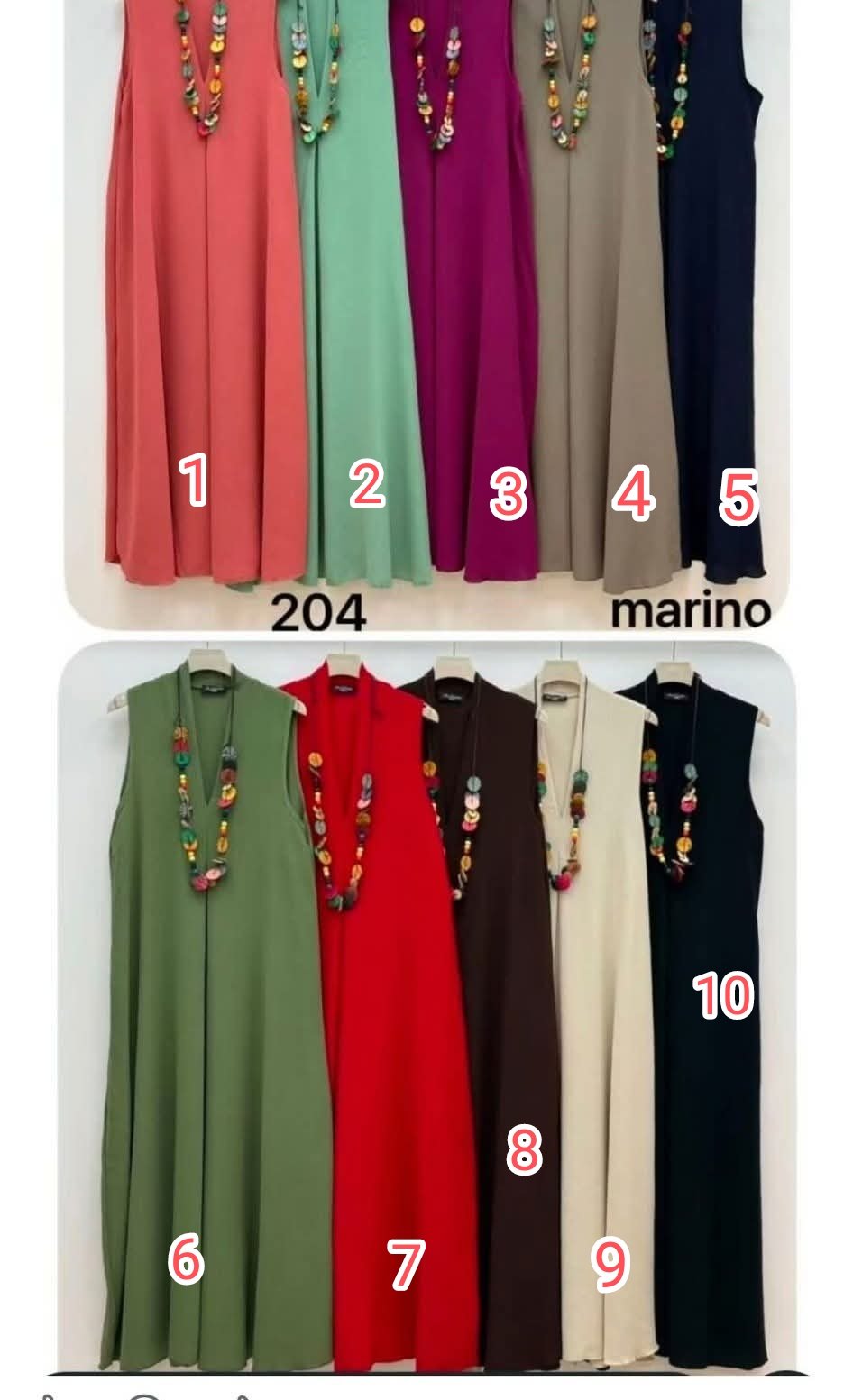 vestido largo con collar de manga corta.Talla única desde la 36 hasta la 42/44 aprox. Diferentes colores.