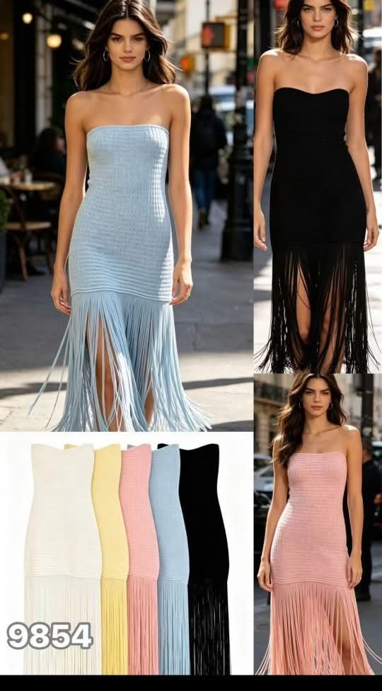vestido sin manga con el cuerpo de punto y por debajo viene con flecos. Talla única desde la 36 hasta la 42/44 aprox.Diferentes colores.