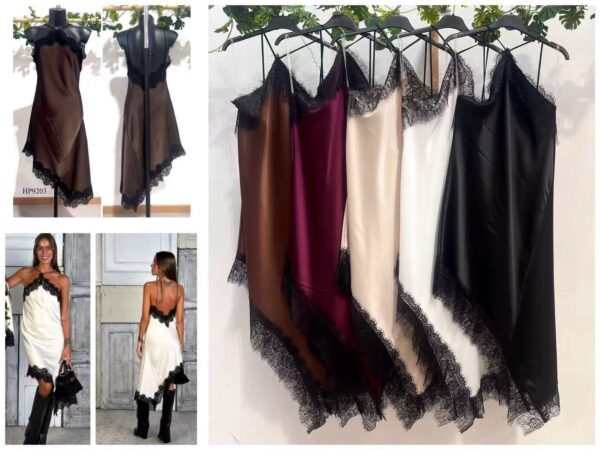 Skip to contentvestido lencero al cuello saten con encaje talla única desde una 36 a 44